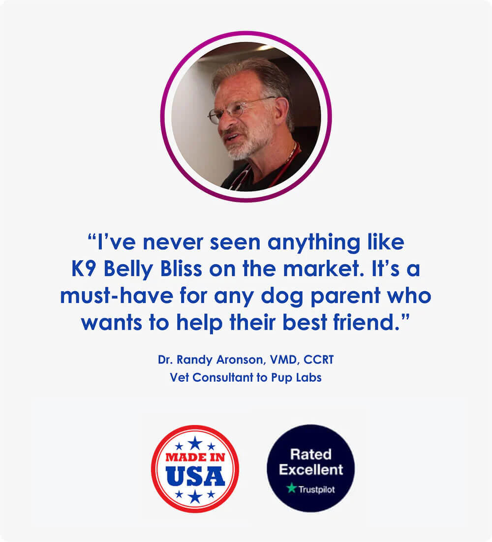 We worked closely with Dr. Randy Aronson, a leading veterinarian with 43 years of experience, to formualte K9 Belly Bliss.