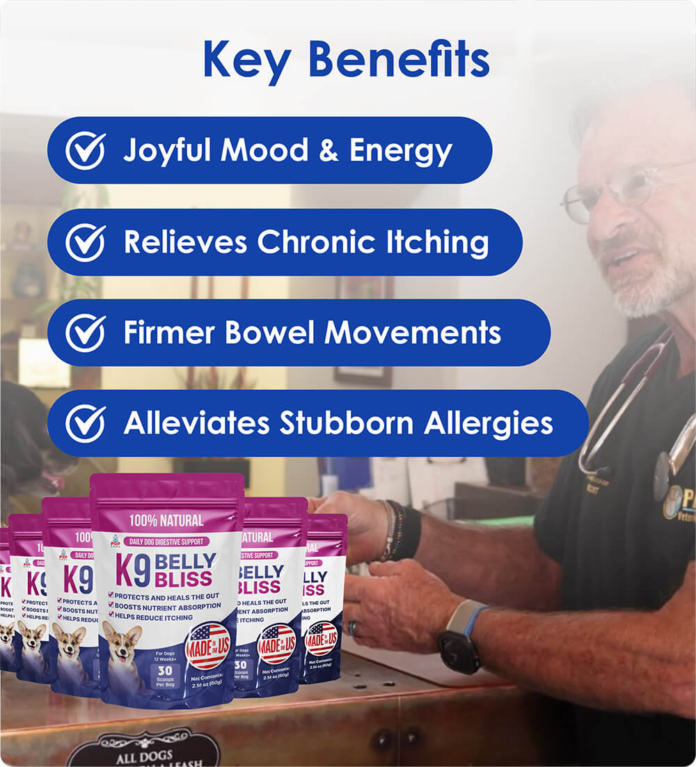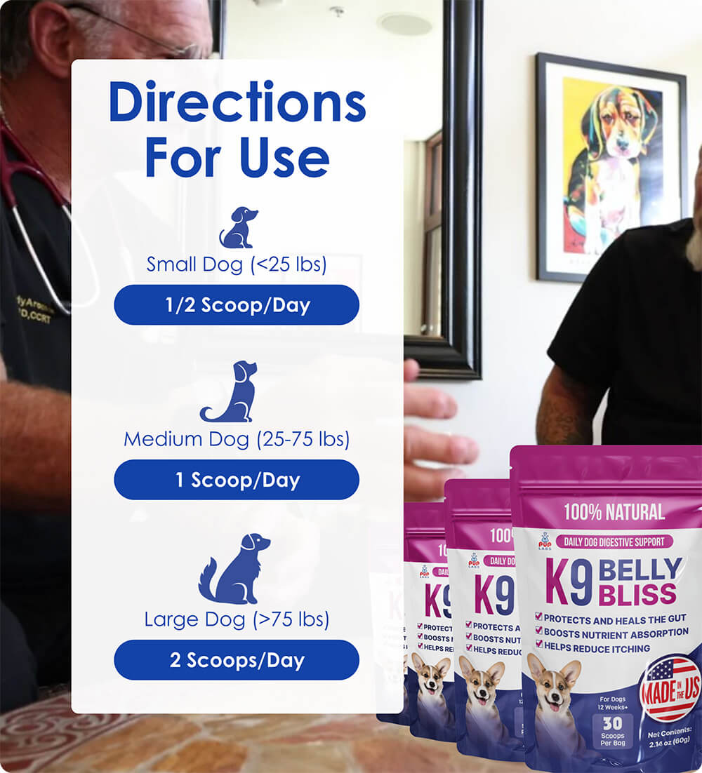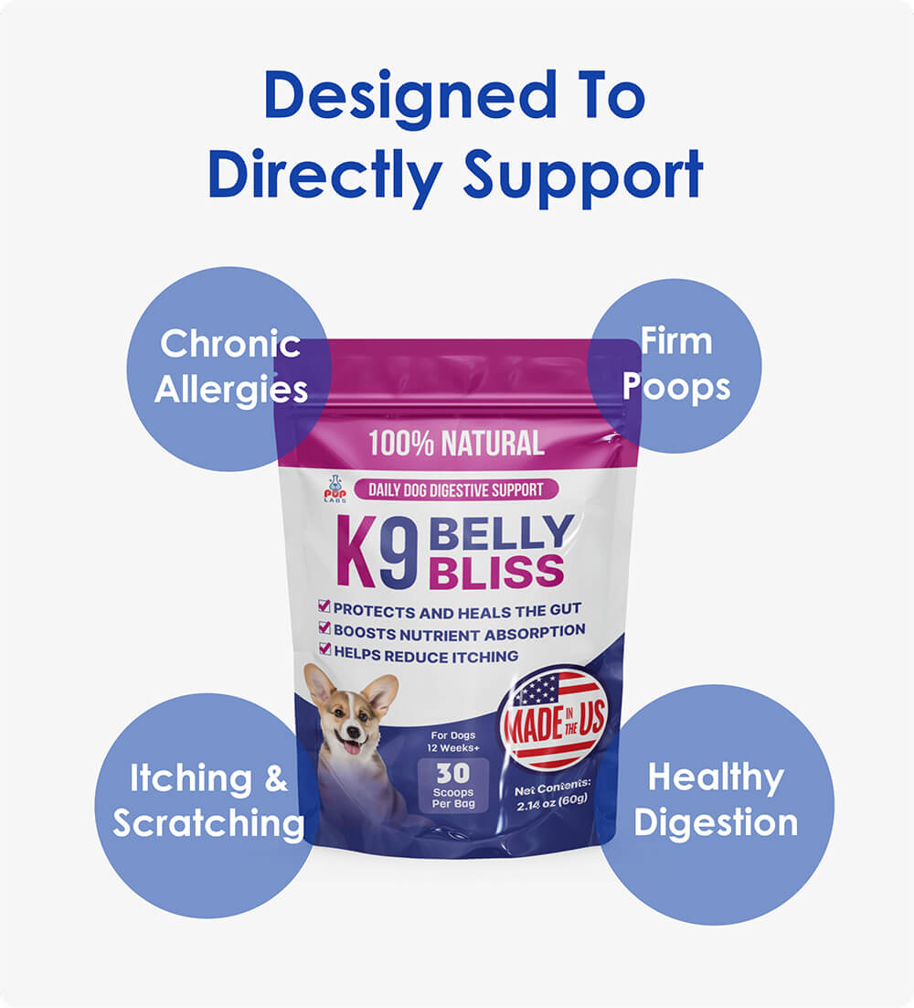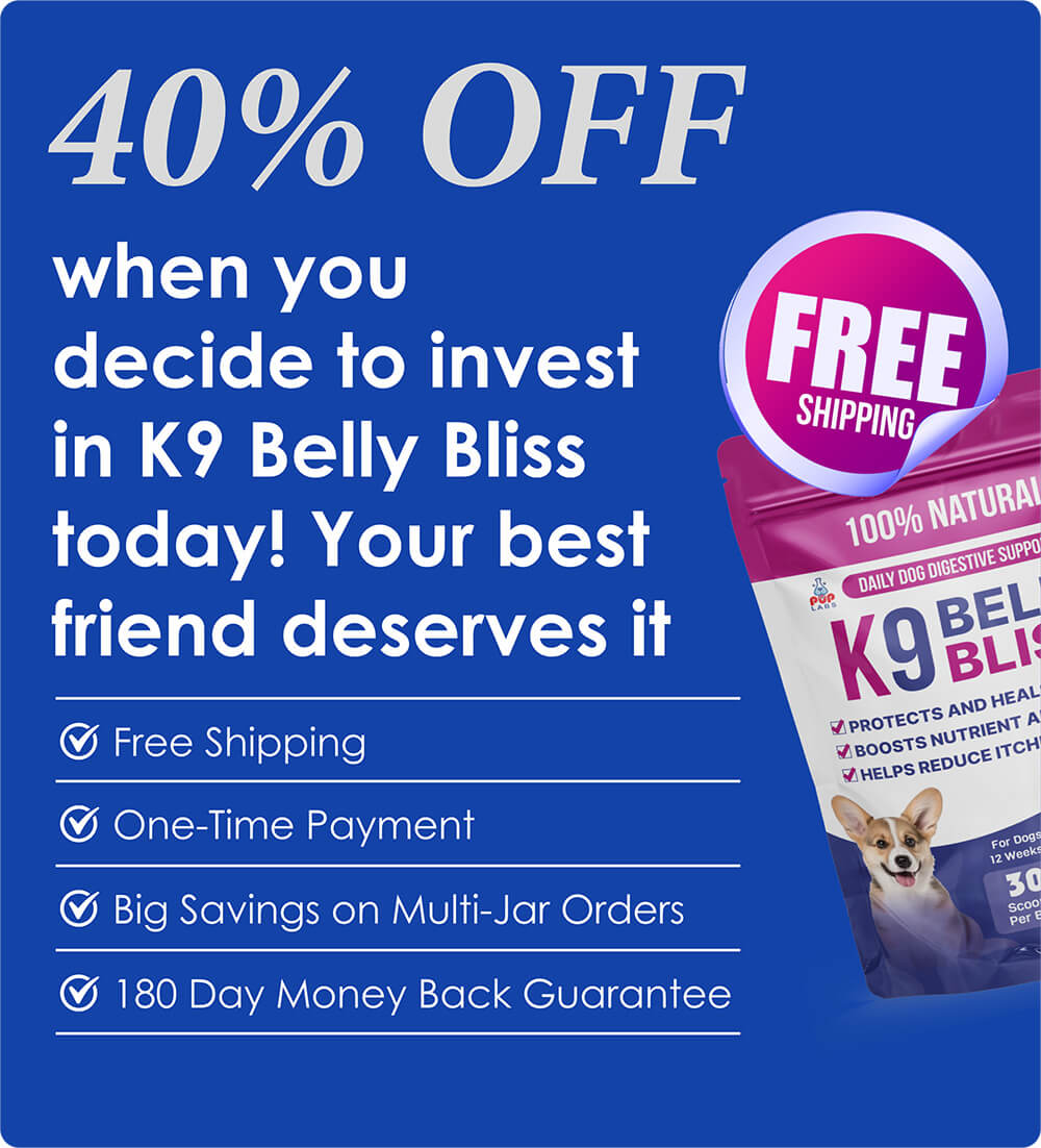 So what are you waiting for? Grab your discounted package of K9 Belly Bliss on this page right now, before we sell out of our current batch!