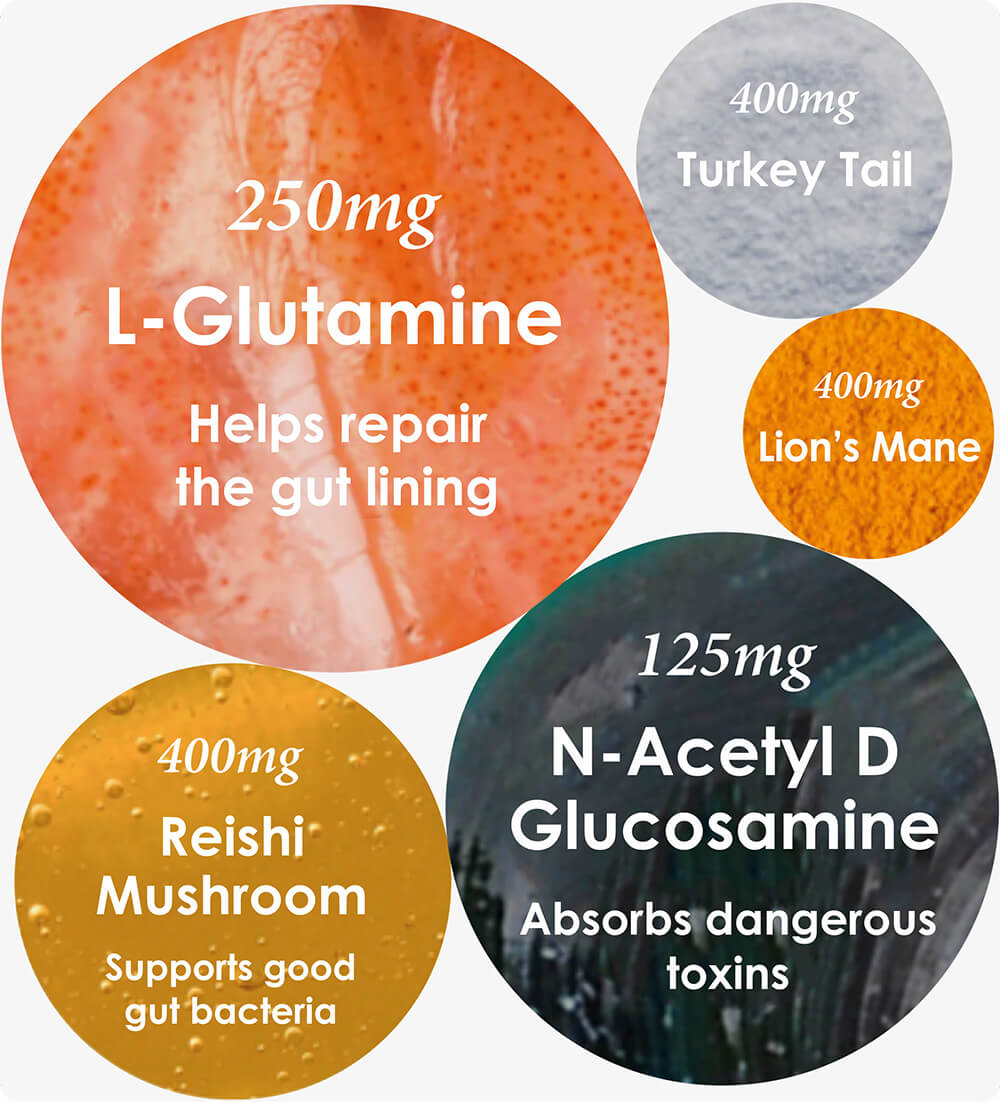 Like Reishi and Lion’s Mane, these two ingredients are potent prebiotics. Once the other ingredients have gotten to work repairing the gut, our prebiotic mix supplys the good bacteria with the fuel they need to prevent future issues.